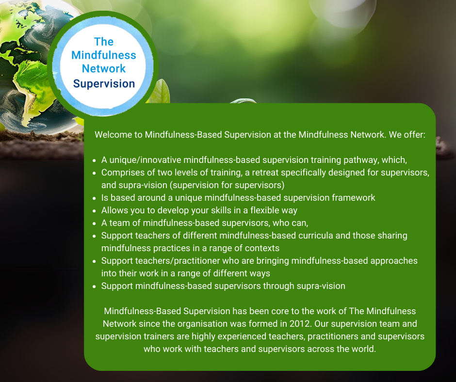 Mindfulness-Based Supervision has been core to the work of The Mindfulness Network since the organisation was formed in 2012. Our supervision team and supervision trainers are highly experienced teachers, practitioners and supervisors who work with teachers and supervisors across the world.