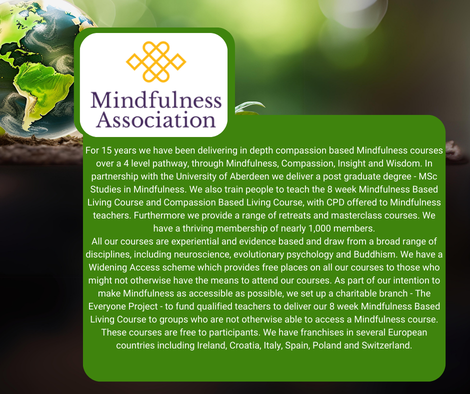 Welcome to the Mindfulness Network. We are a registered charity offering: Mindfulness-based Supervision, Mindfulness Retreats, Mindfulness Training, Compassion Retreats and Training, Learn Mindfulness: Online 8-week Course for Individuals, Mindfulness Mentoring, An Online Community Platform, FREE Online Practice Sessions, FREE Audio Meditations and Recordings, International Conference on Mindfulness 2024