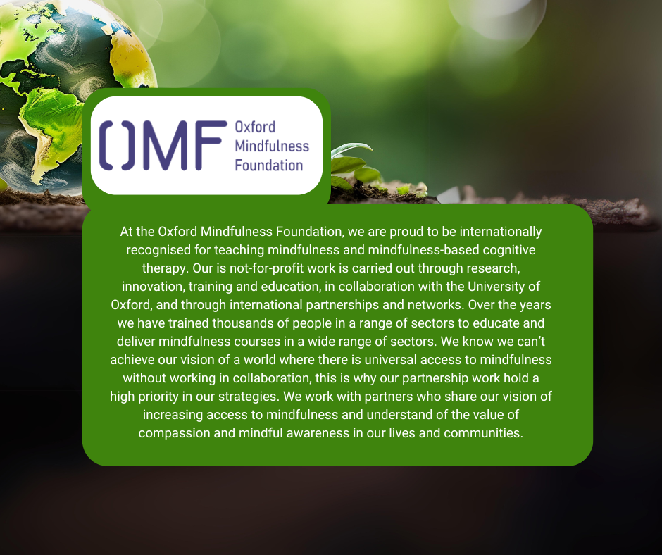 At the Oxford Mindfulness Foundation, we are proud to be internationally recognised for teaching mindfulness and mindfulness-based cognitive therapy. Our is not-for-profit work is carried out through research, innovation, training and education, in collaboration with the University of Oxford, and through international partnerships and networks. Over the years we have trained thousands of people in a range of sectors to educate and deliver mindfulness courses in a wide range of sectors. We know we can’t achieve our vision of a world where there is universal access to mindfulness without working in collaboration, this is why our partnership work hold a high priority in our strategies. We work with partners who share our vision of increasing access to mindfulness and understand of the value of compassion and mindful awareness in our lives and communities.
