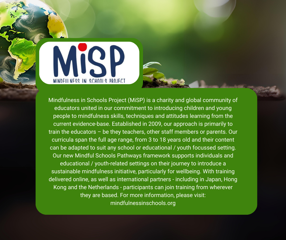 Mindfulness in Schools Project (MiSP) is a charity and global community of educators united in our commitment to introducing children and young people to mindfulness skills, techniques and attitudes learning from the current evidence-base. Established in 2009, our approach is primarily to train the educators – be they teachers, other staff members or parents. Our curricula span the full age range, from 3 to 18 years old and their content can be adapted to suit any school or educational / youth focussed setting. Our new Mindful Schools Pathways framework supports individuals and educational / youth-related settings on their journey to introduce a sustainable mindfulness initiative, particularly for wellbeing. With training delivered online, as well as international partners - including in Japan, Hong Kong and the Netherlands - participants can join training from wherever they are based.